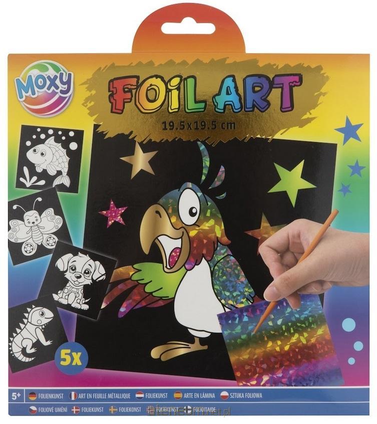 5 arkuszy folii do wyklejania zwierzątek + rysik. Wymiary 21,5 x 21,5 cm.