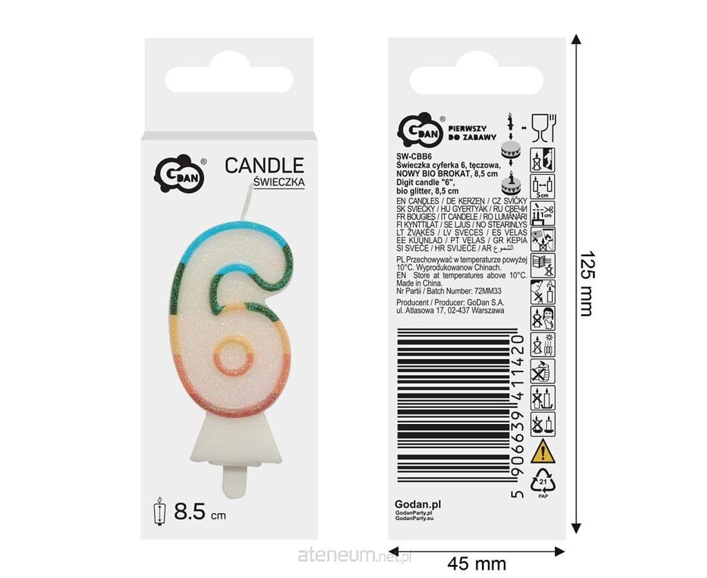 2>ŚWIECZKA CYFRA 6, TĘCZOWA, BIO BROKAT