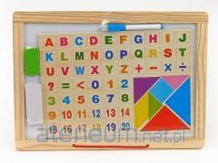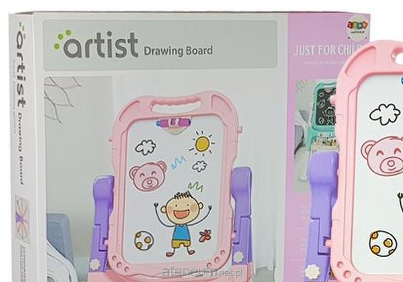 Tablica Magnetyczna Kredowa 2 w 1 Różowo Fioletowa Akcesoria Wielofunkcyjna tablica sprawi radość nie jednemu artyście, ale również może stanowić pomoc naukową. Rysowanie kredą i pisakami to coś dla dziecka, które uwielbia rysować. Różowo- fioletowa tablica pasuje do każdego pokoju dziecięcego. Rysowanie na tablicy rozwinie u dziecka zdolności plastyczne, wyobraźnię i dokładność, funkcje ręki oraz koordynację oko-ręka. Dużo zalet, a jeden produkt. Tablica posiada dwie powierzchnie do rysowania - białą, przeznaczoną do używania zmazywalnych pisaków oraz czarną, po której można rysować za pomocą kredy. Ma możliwość obrotu o 360 stopni. Do zestawu dołączone są mazaki w kolorach czarnym, niebieskim, czerwonym, zielonym oraz żółtym, a także zestaw 12 kawałków kredy. Ponieważ tablica to zabawka magnetyczna, w zestawie znajdują się kolorowe magnesiki, za pomocą których można przytwierdzać do tablicy kartki ze swoimi rysunkami. Cały zestaw zawiera 48 elementów. Obrotowa tablica posiada regulowaną wysokość nóżek - domyślnie można używać jej na dłuższych nogach, dzięki czemu dziecko może z niej korzystać stojąc. Po skróceniu nóżek tablica może zostać ustawiona na przykład na stoliku, przez co korzystanie z niej staje się bardzo wygodne podczas siedzenia. W dolnej części tablicy znajduje się stoliczek na wszystkie kredy i pisaki, na którym można przechowywać swoje akcesoria podczas, gdy z nich nie korzystamy lub nie są nam w tym momencie potrzebne. Dodatkowo na górze tablicy zamontowany jest haczyk umiejscowiony nad tablicą, pozwala również zaczepienie kartki papieru. Elementy zestawu: - 2 kubeczki - 12 kred - 5 pisaków - gąbka do zmazywania - 12 kolorowych magnesów - uchwyt do kredy Wymiary tablicy: 58 cm x 33 cm x 110 cm Wymiary powierzchni do pisania: 31 cm x 41 cm Wysokość od podłoża do tablicy: około 70 cm Wymiary opakowania: 54 cm x 78 cm x 12,5 cm Przeznaczona dla dzieci powyżej 3 roku życia. Zgodna z normą EN71.