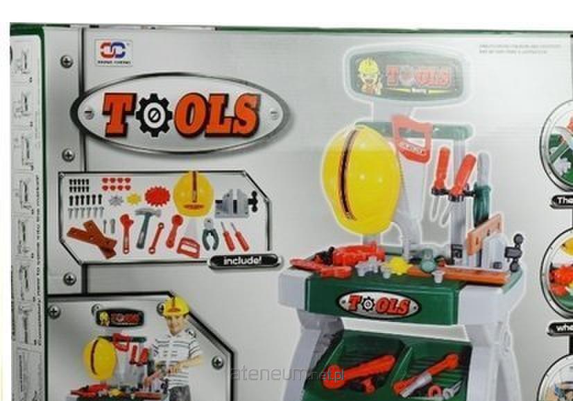 Warsztat Stolik z Narzędziami dla Majsterkowicza Kask Piła Imadło Prezentowany zestaw to prawdziwa frajda dla młodego majsterkowicza. Jeśli Twoje dziecko uwielbia skręcać, rozkręcać, przybija, majsterkować to ten zestaw będzie dla niego idealnym prezentem. W kasku poczuje się jak prawdziwy majster. Dwupiętrowy stolik na dole którego można składować śrubki, śrubokręty niezbędne do dalszej pracy . Kolorystyka i staranne niewykonanie zachęcą do długich godzin wspólnej zabawy. W skład zestawu wchodzi: - warsztat - stolik z wieszakami i pojemnikiem na śrubki - zestaw śrubek - zestaw nakrętek - deski - klucz - młotek - śrubokręty - piła - kask - imadło - szczypce Wymiary warsztatu: Szerokość: 44 cm Wysokość do blatu: 34 cm Całkowita wysokość: 71 cm Wymiary opakowania: 68 cm x 45 cm x 9.5 cm