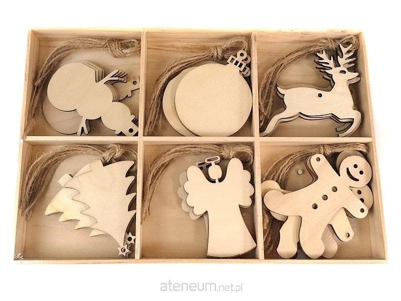 zestaw 30szt zawieszek świątecznych, drewniane; 29x20cm, Box