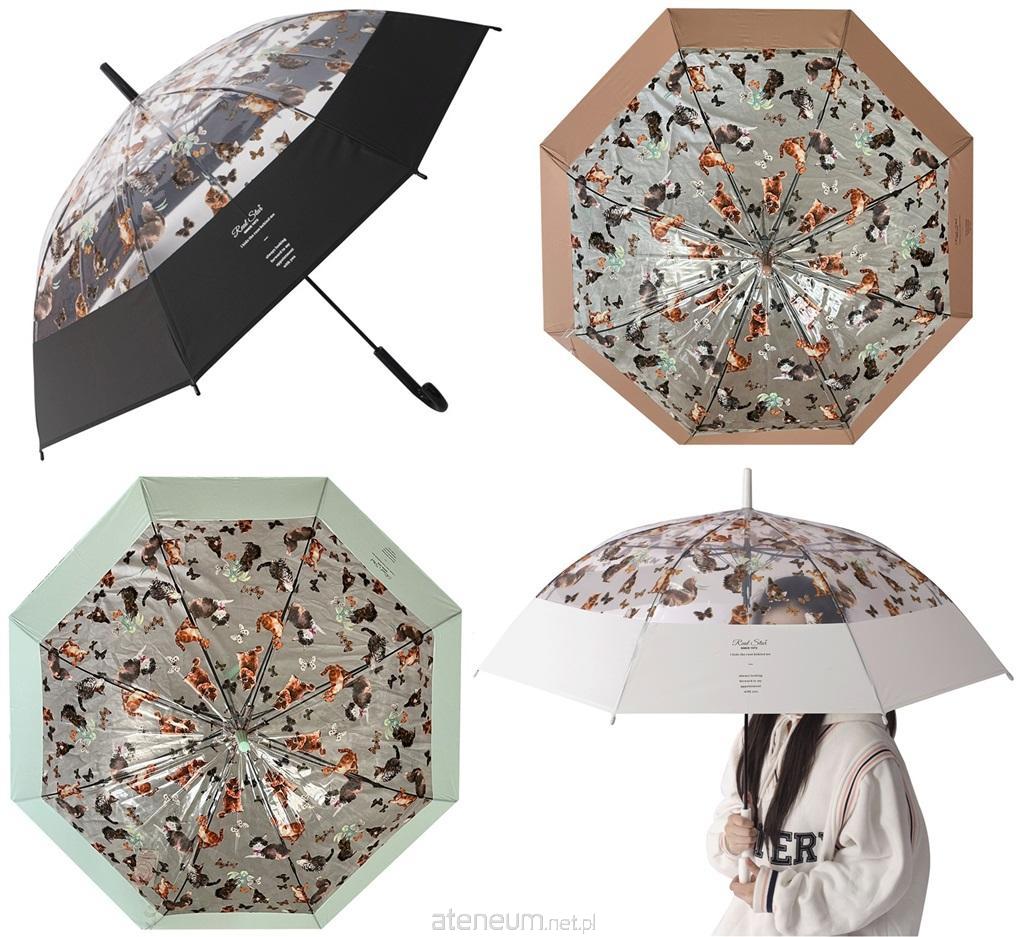 Parasolka przezroczysta dziecięca z wzorami kotów i motyli.