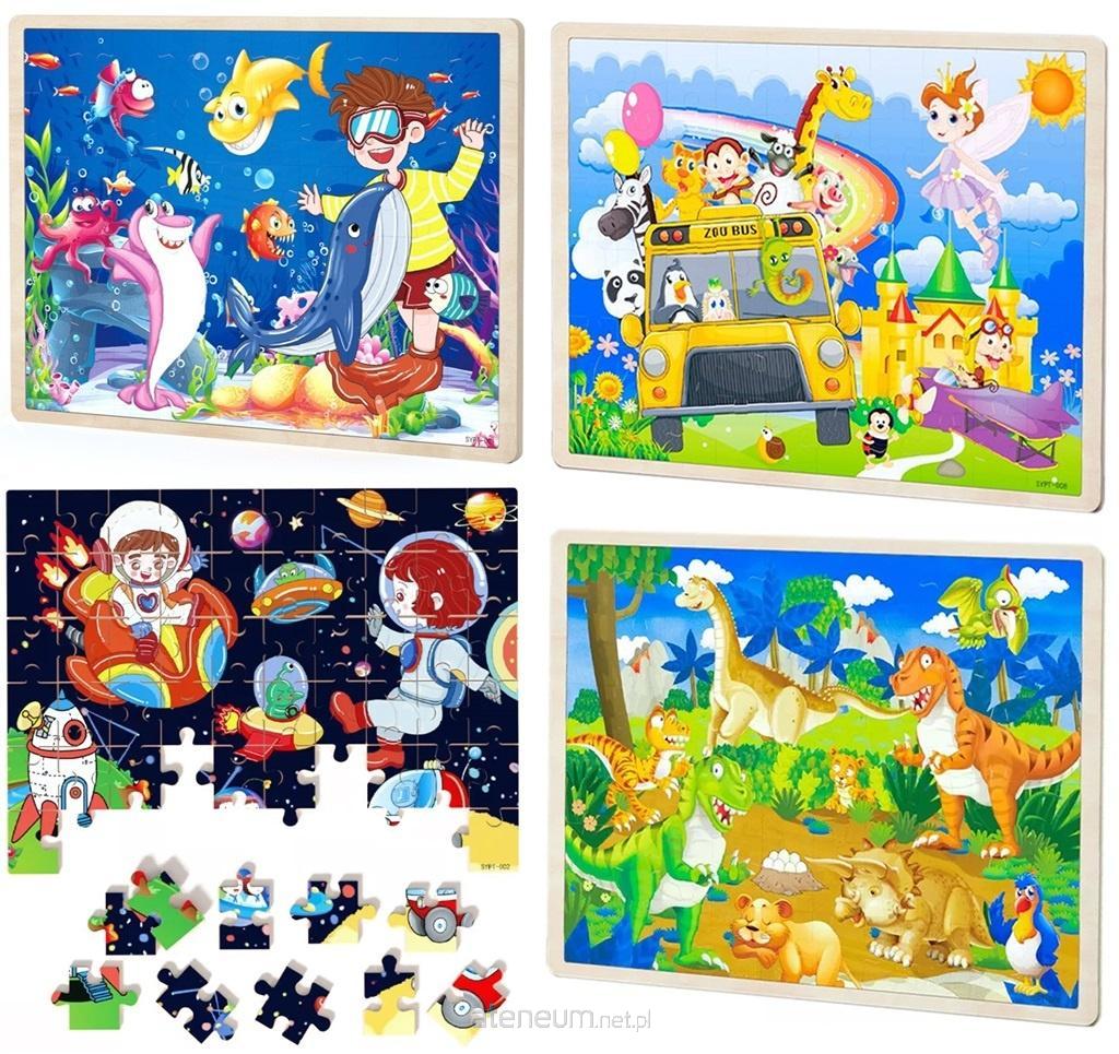 Puzzle w ramce z kolorowanką. Piesek z kotkiem