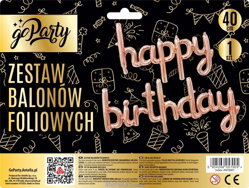 Zestaw balonów Happy Birthday różowe złoto 36el
