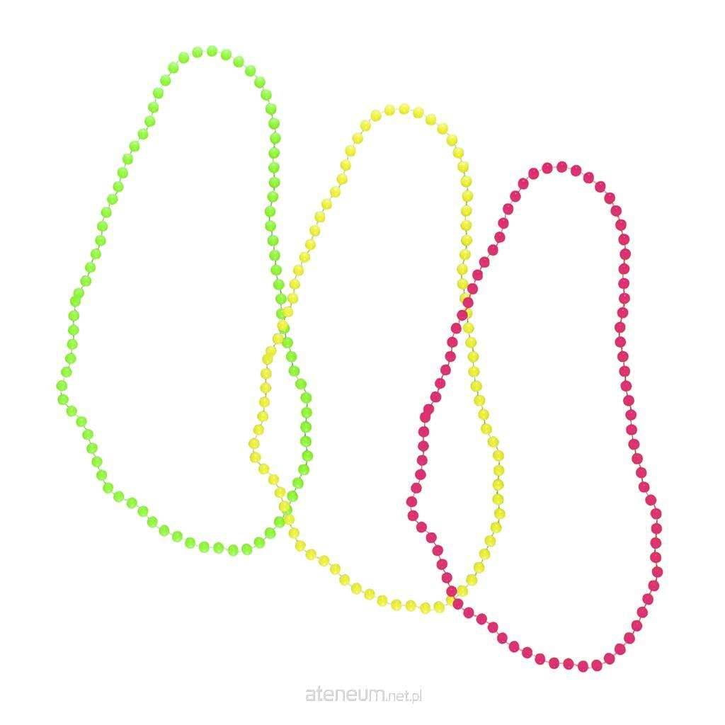 Komplet trzech naszyjników w kolorach neonowych. Produkt wykonany z tworzywa sztucznego. Doskonały dodatek do stylizacji nawiązujących do lat 80', na festiwale i koncerty. W zestawie znajduje mix kolorystyczny. Rozmiar uniwersalny. Długość naszyjnika to 80 cm.