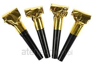 Sylwestrowe gwizdki to tradycyjny element na imprezie noworocznej. Zapewniają radosną zabawę i podkreślają podniosłość świętowanej okazji. Gwizdki w kolorze złotym będą dekoracyjnie prezentować się na stole. Zestaw zawiera 4 sztuki złotych gwizdków, idealnych do rozkręcenia każdej imprezy i witania Nowego Roku. Klasyczne złote gwizdki są gotowe do użycia bez dodatkowych przygotowań. Ich elegancka i błyszcząca powierzchnia stanowi doskonały akcent dekoracyjny. Wszechstronne zastosowanie - idealne jako gadżet na imprezy, przyjęcia, sylwestra oraz inne uroczystości wymagające wyjątkowego akcentu.