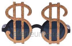 Plastikowe okulary w kształcie dolara amerykańskiego. Idealny gadżet do zdjęć.