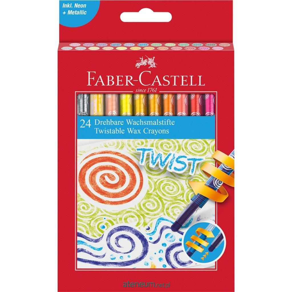 Kredki woskowe wykręcane Faber-Castell 24 szt. w opakowaniu kartonowym. Przeznaczone dla początkujących młodych artystów, którzy kochają ekspresyjnie rysować po dużych powierzchniach. Doskonałe do przedszkola i szkoły, są bezpieczne dla dzieci i łatwe w użyciu. Plastikowy korpus z fantazyjnymi wzorami zapewnia, że dłonie dziecka pozostają czyste. Możliwość wielokrotnego wsuwania i wysuwania wkładu kredki. Żywe kolory, miękkie w aplikacji i wodoodporne. Nie jest potrzebna temperówka. Dostępne w różnych kolorach i różnych zestawach.