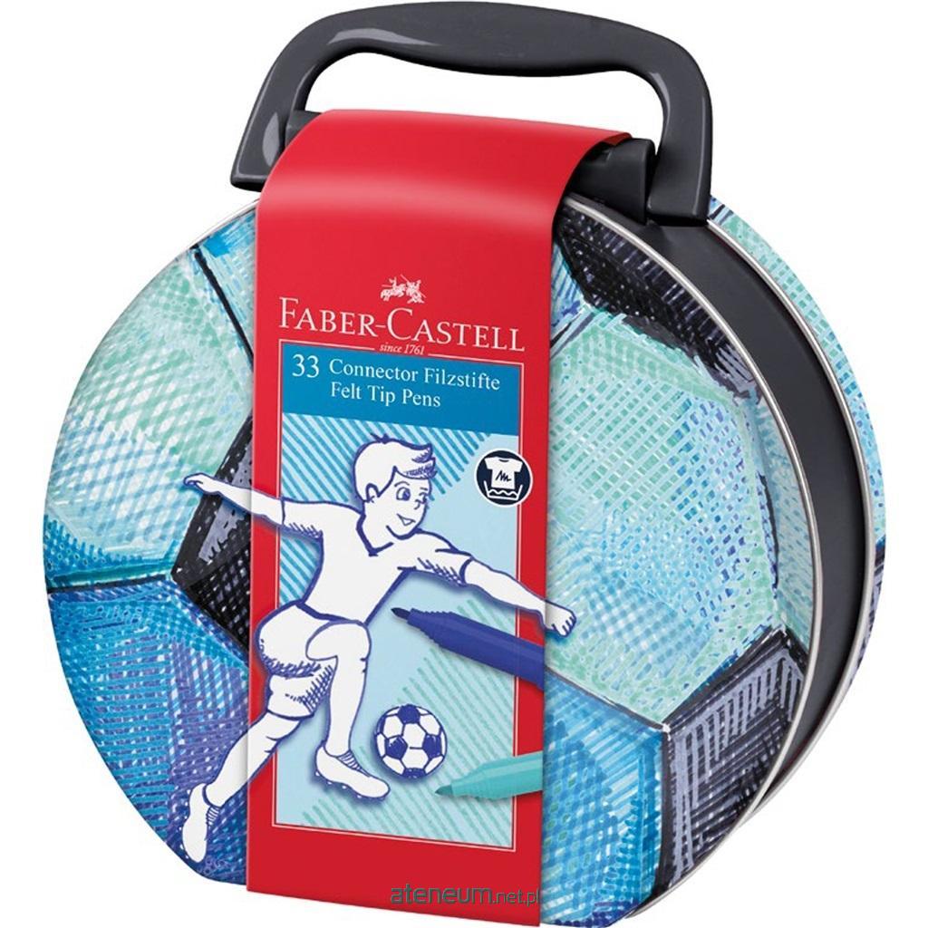 Flamastry Faber-Castell Connector 33 szt. w atrakcyjnym metalowym opakowaniu z motywem piłki nożnej. Pisaki szkolne w intensywnych kolorach z mocną i grubą końcówką piszącą. Odpowiednie do malowania i kolorowania większych powierzchni. Intensywne kolory, Spieralne z większości tkanin. Dzięki specjalnym klipsom pisaki można ze sobą łączyć w kreatywne konstrukcje. Inspirują do rozwoju technik rysowania i pobudzają dziecięcą kreatywność.