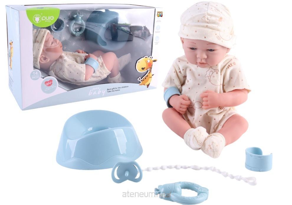 Lalka ubrana jest w pastelowe body z motywem dziecięcym i czapeczkę, które można łatwo zdjąć, by odgrywać różnorodne scenariusze. W zestawie znajdują się również akcesoria, takie jak smoczek z łańcuszkiem, grzechotka i nocniczek, które uczą podstawowych czynności opiekuńczych. To doskonały sposób na rozwijanie empatii, troski i zdolności manualnych u dziecka.