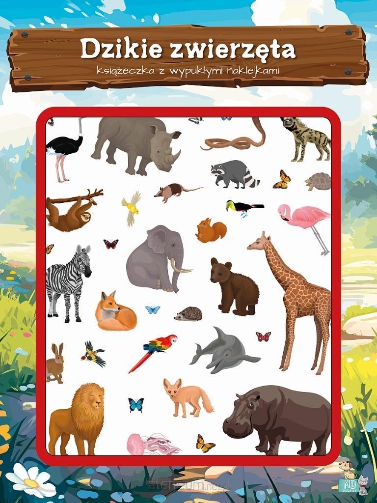 "Wyrusz na spotkanie z dzikimi zwierzętami z wielu zakątków świata. Wykorzystaj naklejki, by zaprojektować własne scenki na kolorowych rozkładówkach. Dzięki kreatywnej zabawie z naklejkami dziecko nauczy się dopasowywać elementy do różnych kontekstów, pozna nowe słowa, będzie rozwijać wyobraźnię i koordynację wzrokowo-ruchową, nabierając tym samym wprawymi przed nauką pisania. Seria książeczek aktywizujących dla najmłodszych. Książki zawierają sceny do wyklejania oraz 2 arkusze naklejek na lekkim kleju + arkusz naklejek wypukłych. Strony książeczki zostały pokryte lakierem, by dziecku łatwiej było odkelejać naklejki i przyklejać ponownie."