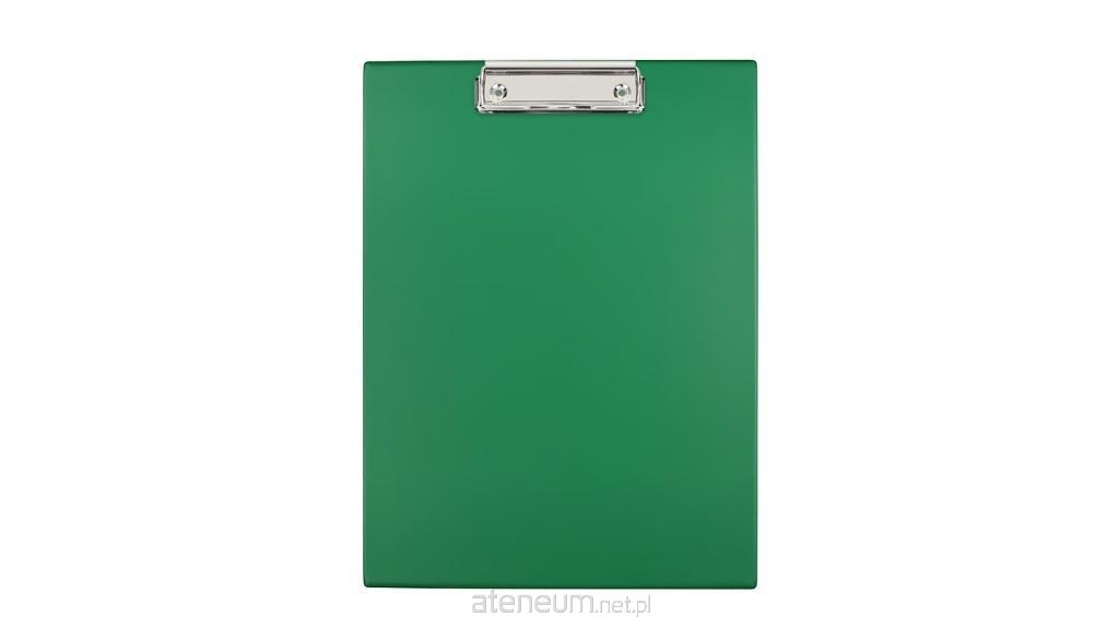 Wykonany z kolorowej folii PVC. Środek usztywniony tekturą. Wyposażony w sprężysty mechanizm zaciskowy służący do przytrzymywania kartek. Podkładka pojedyncza. Format A4.