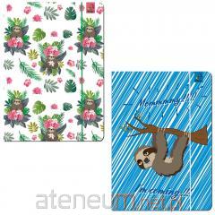 Wykonany z kolorowej folii PVC. Środek usztywniony tekturą. Wyposażony w sprężysty mechanizm zaciskowy służący do przytrzymywania kartek. Kieszeń na wewnętrznej stronie okładki i miejsce na długopis. Teczka zamykana. Format A5.