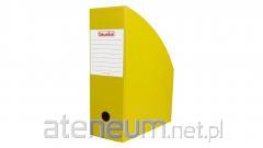 Wykonany z kolorowej folii PVC, wewnątrz usztywniony tekturą. Format A4 o ściętych bokach. Wyposażony w kieszonkę z wymienną etykietą opisową na grzbiecie. Okrągłe wycięcie na palec pozwalające na łatwe wysuwanie pojemnika. Szerokość grzbietu 7 cm.