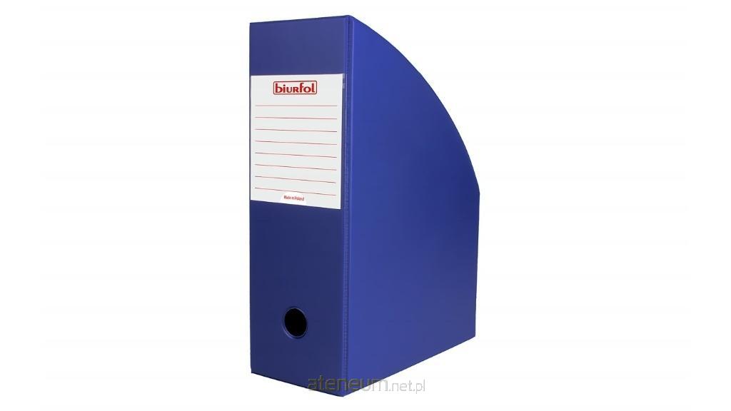 Wykonany z kolorowej folii PVC, wewnątrz usztywniony tekturą. Format A4 o ściętych bokach. Wyposażony w kieszonkę z wymienną etykietą opisową na grzbiecie. Okrągłe wycięcie na palec pozwalające na łatwe wysuwanie pojemnika. Szerokość grzbietu 10 cm.