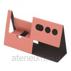 Wykonany z kolorowej folii PVC, wewnątrz usztywniony tekturą. Format A4 o ściętych bokach. Wyposażony w kieszonkę z wymienną etykietą opisową na grzbiecie. Okrągłe wycięcie na palec pozwalające na łatwe wysuwanie pojemnika. Szerokość grzbietu 10 cm.