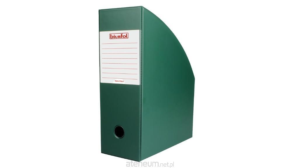 Wykonany z kolorowej folii PVC, wewnątrz usztywniony tekturą. Format A4 o ściętych bokach. Wyposażony w kieszonkę z wymienną etykietą opisową na grzbiecie. Okrągłe wycięcie na palec pozwalające na łatwe wysuwanie pojemnika. Szerokość grzbietu 10 cm.