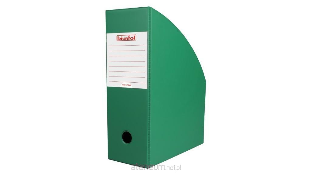 Wykonany z kolorowej folii PVC, wewnątrz usztywniony tekturą. Format A4 o ściętych bokach. Wyposażony w kieszonkę z wymienną etykietą opisową na grzbiecie. Okrągłe wycięcie na palec pozwalające na łatwe wysuwanie pojemnika. Szerokość grzbietu 10 cm.