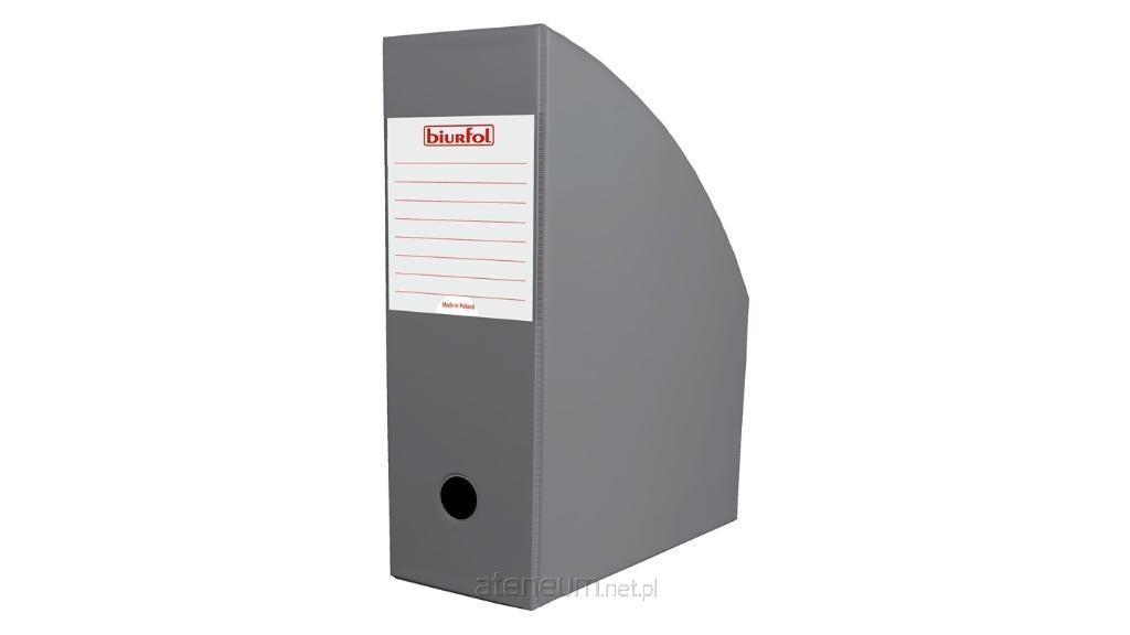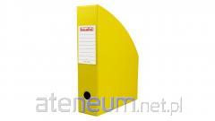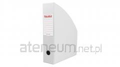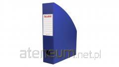 Wykonany z kolorowej folii PVC, wewnątrz usztywniony tekturą. Format A4 o ściętych bokach. Wyposażony w kieszonkę z wymienną etykietą opisową na grzbiecie. Okrągłe wycięcie na palec pozwalające na łatwe wysuwanie pojemnika. Szerokość grzbietu 10 cm.