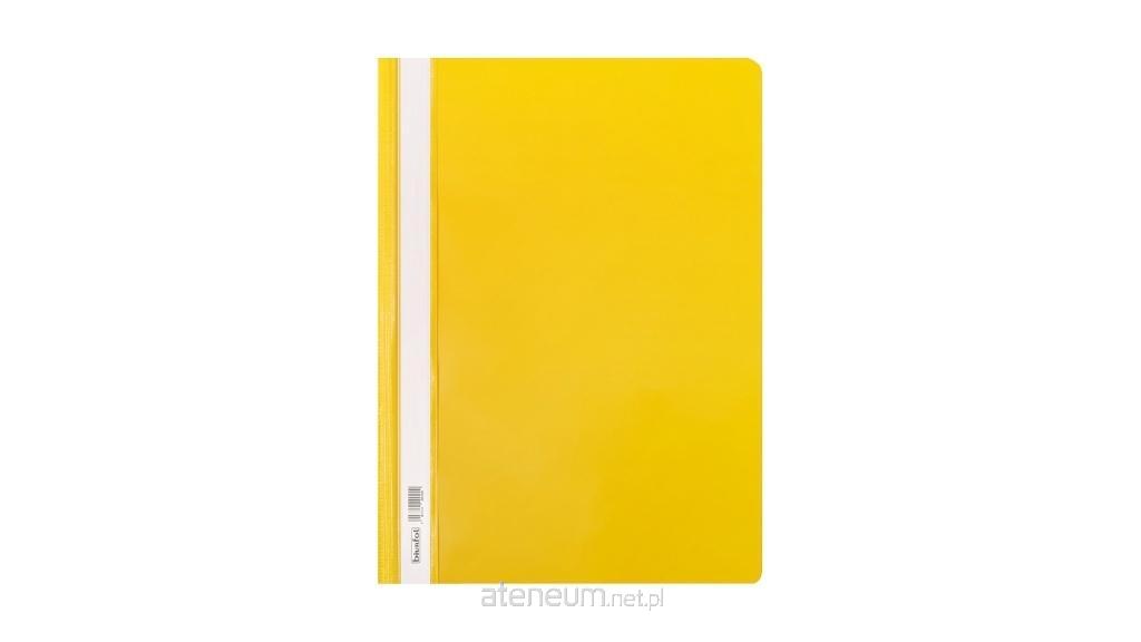 Skoroszyt wykonany z twardej folii PVC, przód przezroczysty, tył kolorowy. Wewnątrz klasyczny mechanizm z wąsem i listwą skutecznie zabezpieczający wpiętą zawartość; wąs o długości 16,5 cm. Na bocznej krawędzi wymienny, papierowy pasek do opisu zawartości z kodem kreskowym na szt. Dwa wycięcia ułatwiające wysuwanie paska. Zaokrąglone rogi obu okładek.