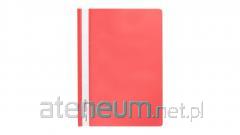 Skoroszyt wykonany z twardej folii PVC, przód przezroczysty, tył kolorowy. Wewnątrz klasyczny mechanizm z wąsem i listwą skutecznie zabezpieczający wpiętą zawartość; wąs o długości 16,5 cm. Na bocznej krawędzi wymienny, papierowy pasek do opisu zawartości z kodem kreskowym na szt. Dwa wycięcia ułatwiające wysuwanie paska. Zaokrąglone rogi obu okładek.
