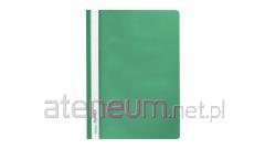 Skoroszyt wykonany z polipropylenu, miękki, przód przezroczysty, tył kolorowy. Wewnątrz klasyczny mechanizm z wąsem i listwą skutecznie zabezpieczający wpiętą zawartość; wąs o długości 14,5 cm. Na bocznej krawędzi wymienny, papierowy pasek do opisu zawartości z kodem kreskowym na szt.. Dwa wycięcia ułatwiające wysuwanie paska. Zaokrąglone rogi obu okładek.