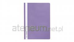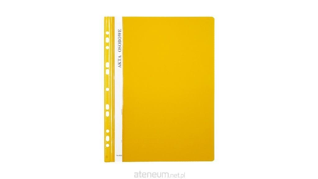 Skoroszyt wykonany z twardej, nieprzezroczystej folii PVC, dla ochrony danych osobowych. Wewnątrz zamontowano mechanizmy skoroszytowe umożliwiające wpięcie dokumentów. Wyposażony w uniwersalne, papierowe przekładki A, B, C, D, E bez opisu kategorii. Wzmocniona boczna perforacja umożliwiająca wpięcie do segregatora z dowolnym ringiem. Na przedniej stronie podłużna kieszeń z wymiennym, papierowym paskiem do opisu zawartości. Po obu stronach kieszeni dwa wycięcia ułatwiające wysuwanie paska.
