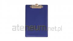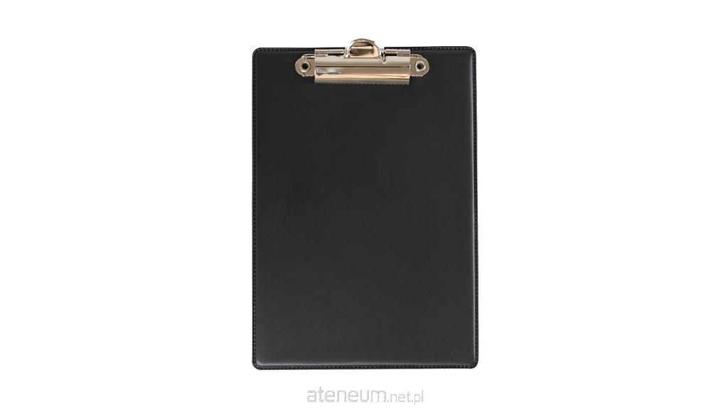 Wykonany z kolorowej folii PVC. Środek usztywniony tekturą. Wyposażony w sprężysty mechanizm zaciskowy służący do przytrzymywania kartek. Podkładka pojedyncza. Format A6. Dostępny w trzech kolorach: niebieski, granat, czarny.