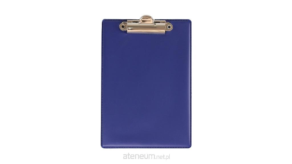 Wykonany z kolorowej folii PVC. Środek usztywniony tekturą. Wyposażony w sprężysty mechanizm zaciskowy służący do przytrzymywania kartek. Podkładka pojedyncza. Format A6. Dostępny w trzech kolorach: niebieski, granat, czarny.