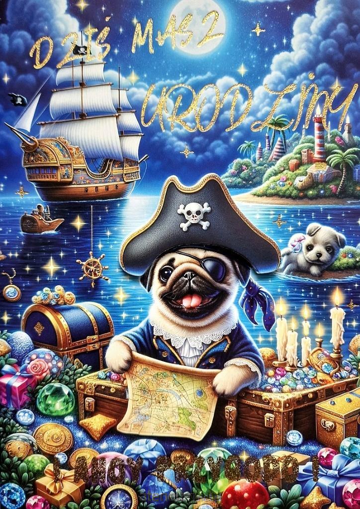 Karnet Urodzinki Mops 3K