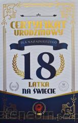 Karnet Certyfikat Urodzinowy 18 urodziny męskie