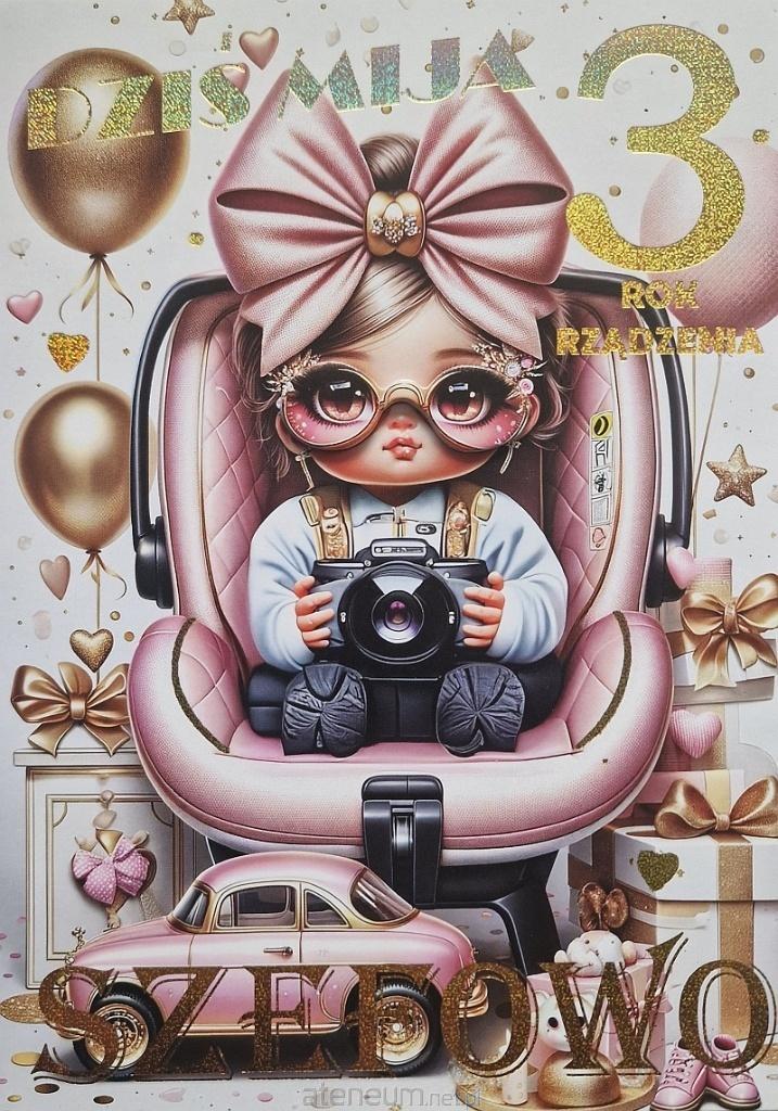 Karnet B6 Urodziny 3 dziewczynka
