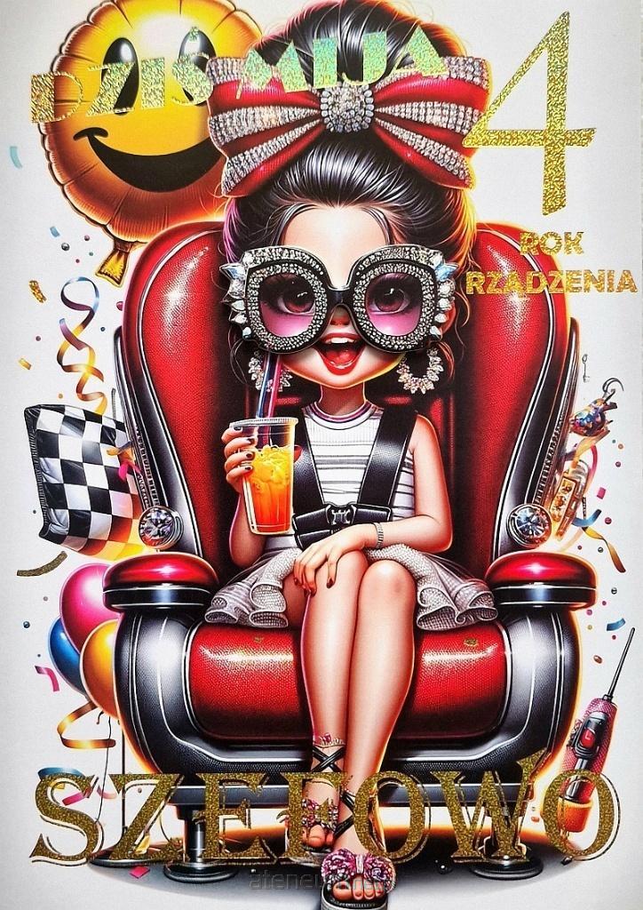 Karnet B6 brokat z kopertą Urodziny 4 dziewczynka