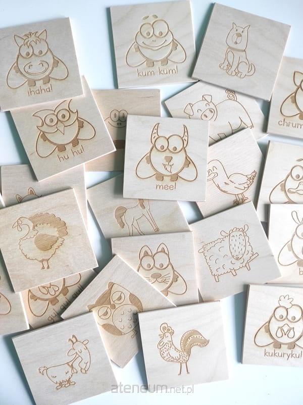 Zestaw zawiera: 24 płytki: 12 z Muchą Katarzyną w przebraniu i 12 z wizerunkami zwierząt, instrukcję,