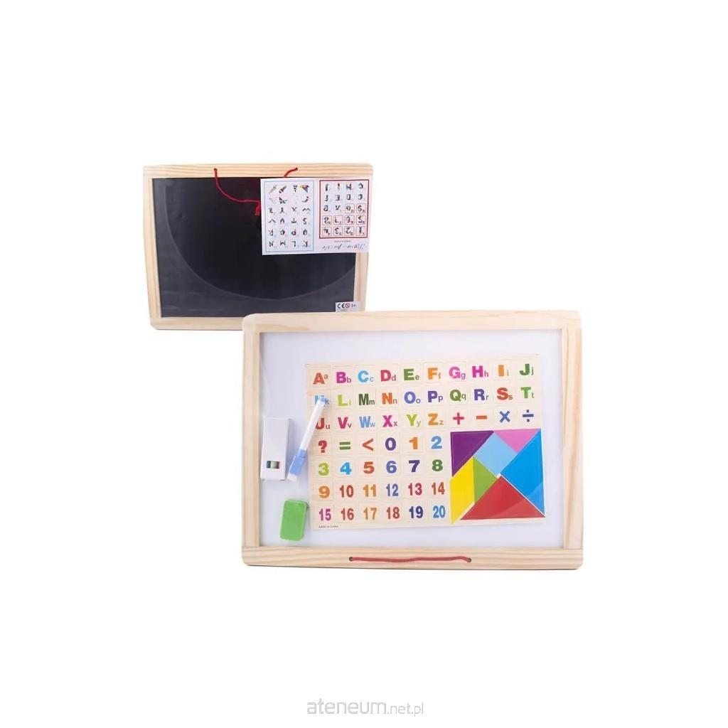 Jedna strona tablicy to tradycyjna tablica kredowa na której możemy pisać kredami i zmazywać gąbką. Druga strona to tablica suchościeralna po której piszemy pisakami, które później możemy zmazywać specjalną ściereczką. Dodatkowo tablica posiada magnes dzięki któremu to tablicy możemy przyczepiać cyferki i literki zawarte w zestawie. Krawędzie tablicy wykonane są z drewna dzięki czemu zabawka jest ekologiczna.