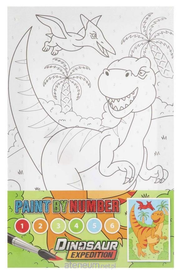 Dino Malowanie po numerach. Płótno z nadrukowanym dinozaurem 29,7 x 19 cm