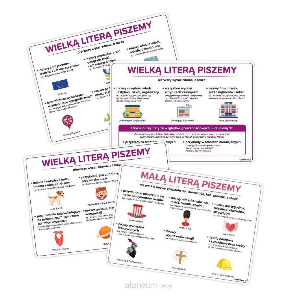 Zasady pisowni jakie zawiera zestaw: mała litera, wielka litera.