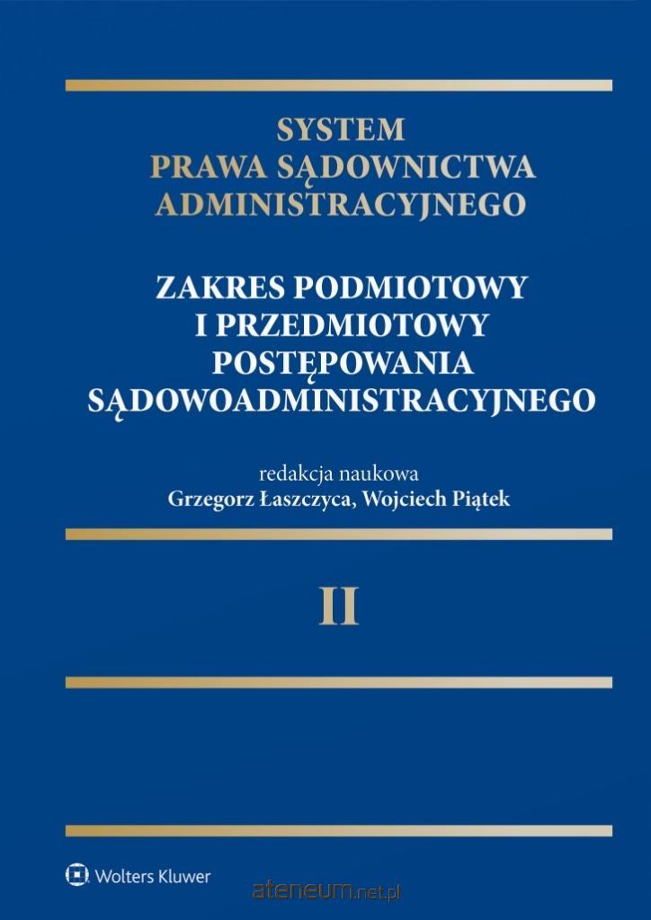 Drugi tom Systemu Prawa Sądownictwa Administracyjnego stanowi kontynuację badań nad istotą sądownictwa administracyjnego. Obejmuje on zagadnienia dotyczące przedmiotu sądowej kontroli administracji publicznej oraz podmiotów, które biorą udział w postępowaniu przed sądem administracyjnym. Przedstawione w nim zostały zagadnienia dotyczące istoty każdego rodzaju aktu i czynności poddanych sądowej kontroli, w tym decyzji administracyjnej, różnych form bezczynności oraz przewlekłego prowadzenia postępowania administracyjnego. W oddawanym do rąk czytelników tomie znajduje się także pogłębiona analiza uprawnień procesowych poszczególnych podmiotów, które biorą udział w postępowaniu sądowoadministracyjnym, począwszy od skarżącego, a skończywszy na sądzie, przed którym toczy się postepowanie. Sądownictwo administracyjne w Polsce ma długoletnią tradycję. Imponujący dorobek orzeczniczy sądów administracyjnych stanowi podstawę do głębszej refleksji naukowej mającej na celu usystematyzowanie dotychczasowej wiedzy w dziedzinie sądowej kontroli administracji publicznej oraz wytyczenie kierunków rozwoju jednej z mających konstytucyjne umocowanie gałęzi sądownictwa w Polsce. Autorzy powołują przy tym aktualny dorobek nauki w tej dziedzinie.