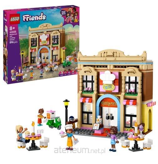 Dzięki zestawowi LEGO® Friends Restauracja i szkoła gotowania (42655) zabawa ośmiolatków i starszych dzieci zmieni się w niesamowitą przygodę dla smakoszy. Ta szczegółowa zabawka do odgrywania ról zawiera dwupiętrowy budynek z kuchnią w szkole gotowania i jadalnią na świeżym powietrzu, a także cztery minilaleczki i figurkę kota. Zestaw będzie świetnym prezentem urodzinowym dla dzieci, które lubią kreatywną zabawę.