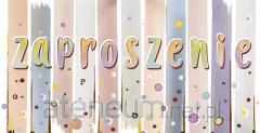 Zaproszenia w kompletach po 10 sztuk. W zestawie znajduje się koperty, kolorystycznie uzupełniające się z zaproszeniami.