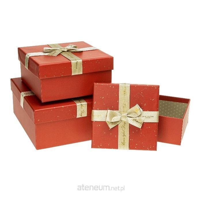 Pudełko prezentowe z kokardą 3szt czerwony ROZETTE