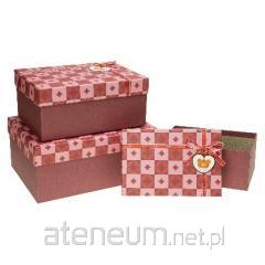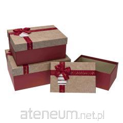 Pudełko prostokątne z kokardą 3szt czerw ROZETTE