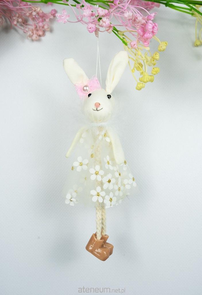 Wiosenny zajączek - dekoracja do zawieszenia. Zajączek posiada delikatną sukienkę w kwiatki. Idealna dekoracja do wiosennych stroików, aranżacji lub pokoju dla dziewczynki