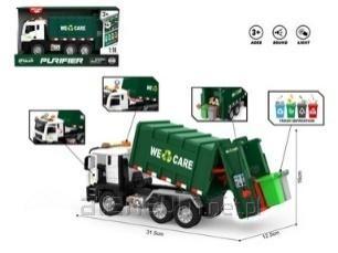 Auto śmieciarka zielona 1:10 światło dźwięk 31.5x12.5x16cm open box 38x13.5x21 cm