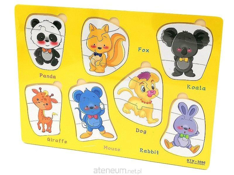 Puzzle 7 obrazków, każdy składa się z 3 elementów, z nazwami w języku angielskim