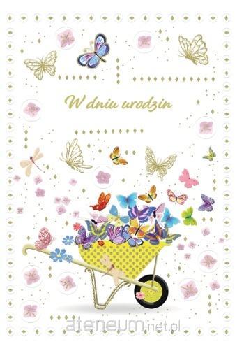 Karnet okolicznościowy z kopertą i życzeniami w środku.