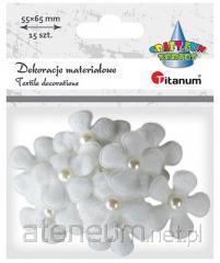 Ozdoba materiałowa kwiaty 3D z perełką białe 15szt