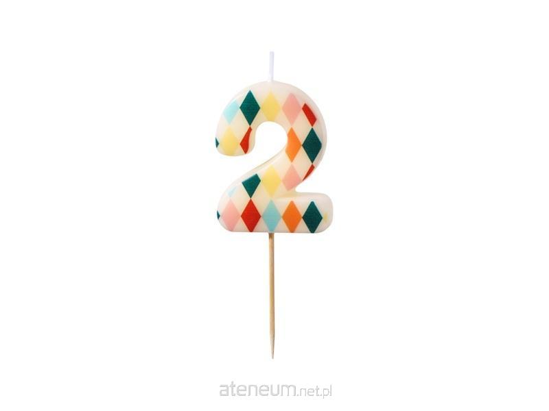 Świeczka urodzinowa Cyfra 2 Romby, mix kolorów, wysokość ok. 5,5 cm