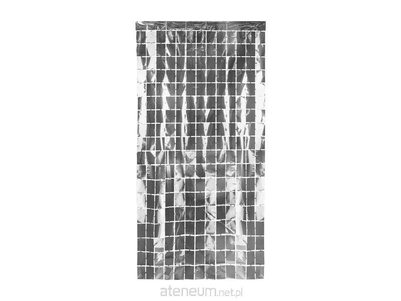 Kurtyna Party Kwadraty metalizowana w kolorze srebrnym, szerokość ok. 100 cm, wysokość ok. 200 cm.