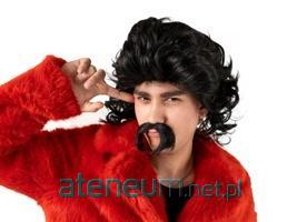 Peruka o długich włosach w kolorze czarnym, w zestawie z wąsami